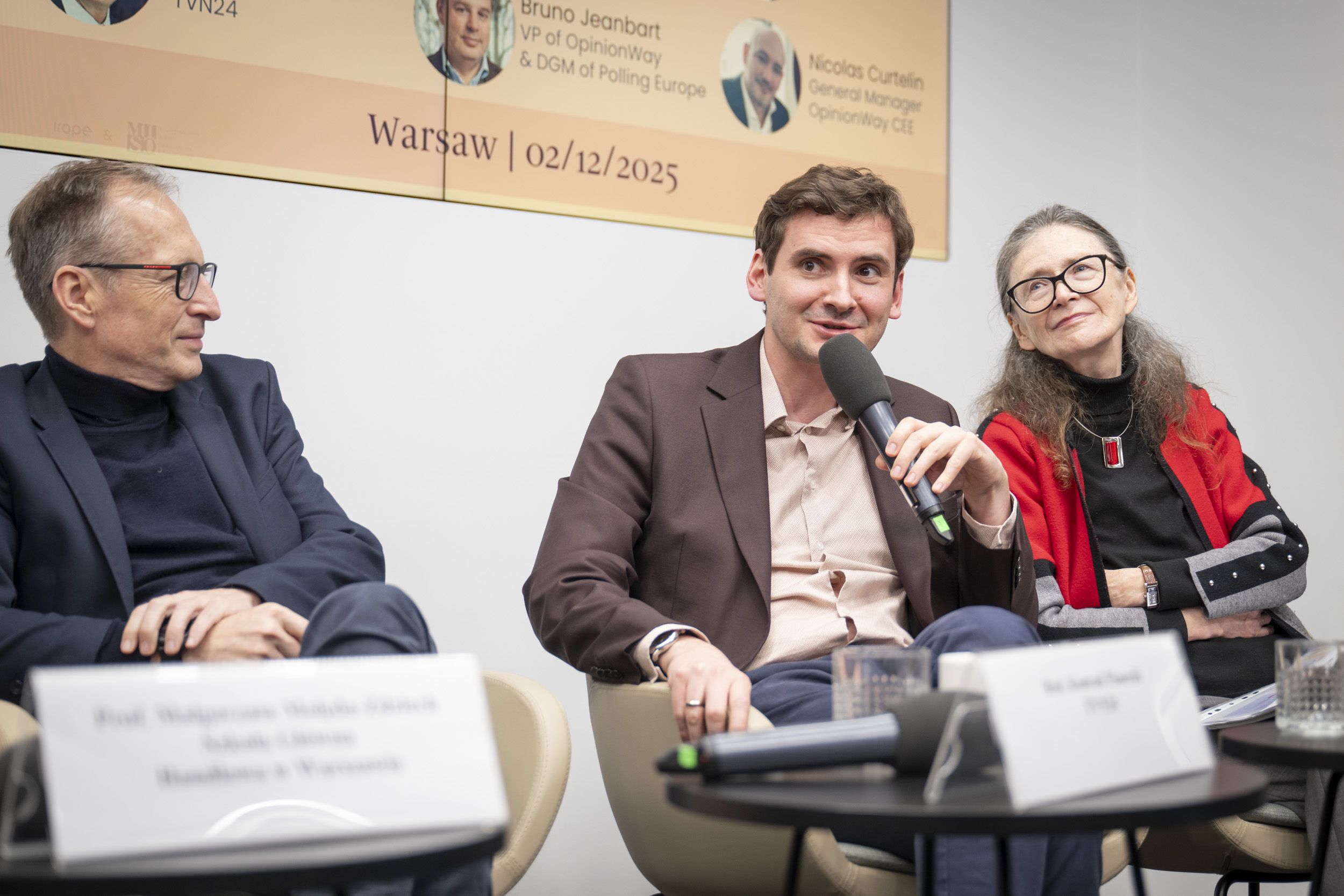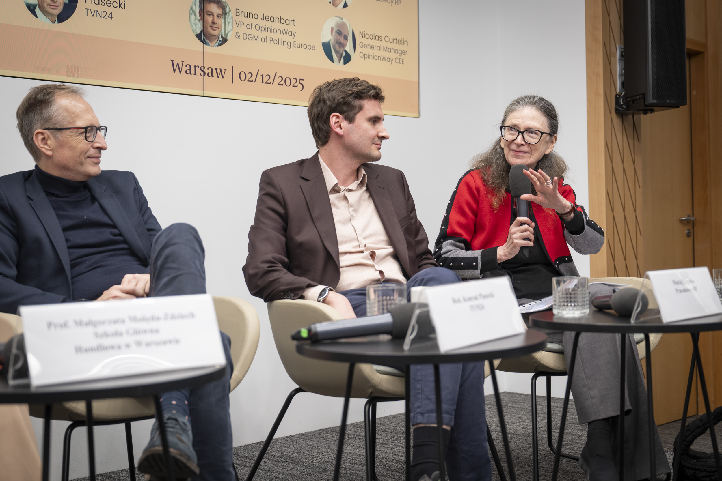 The presentation was followed by a panel discussion moderated by Karol Reczkin (MISO Analysis Centre), with the participation of Nicolas Curtelin (OpinionWay CEE), Bruno Jeanbart (OpinionWay Group & Polling Europe), Maciej Legutko (Employers of Poland), Prof. Małgorzata Molęda-Zdziech (SGH & Team Europe Direct Poland), journalist Konrad Piasecki (TVN24), and Prof. Krystyna Skarżyńska (SWPS University). The speakers highlighted the implications of Poles’ growing sense of agency for European politics, as well as the importance of security: military, economic, and informational, as a factor shaping and integrating public opinion.